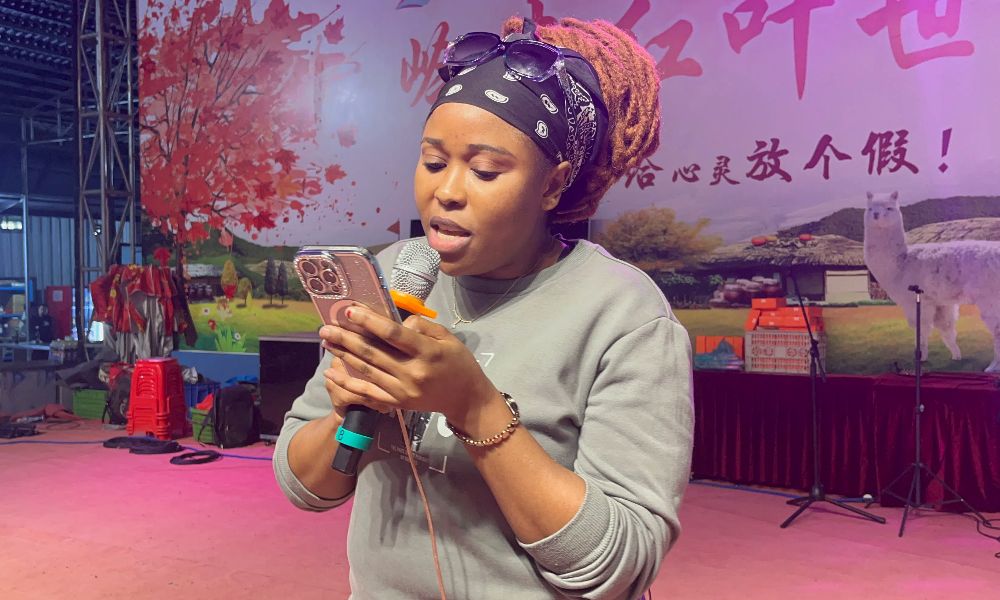 欢乐的氛围一直持续到了夜幕降临之时。为了迎接这群朝气蓬勃的国际朋友,一场盛大的篝火晚会在青云山上拉开序幕。红红的篝火熊熊燃起,明亮的星月触手可及,大家围着火焰手拉着手一起跳舞,几位同学还为此特地准备了歌唱表演。“朋友一生一起走,那些日子不再有……”领头演唱了一曲《朋友》的赞比亚留学生Sophie获得了全场热烈的掌声,她告诉记者,“这首中文歌很经典、很好听,唱着喜欢的歌曲来学习中文让我感到乐趣无穷。”