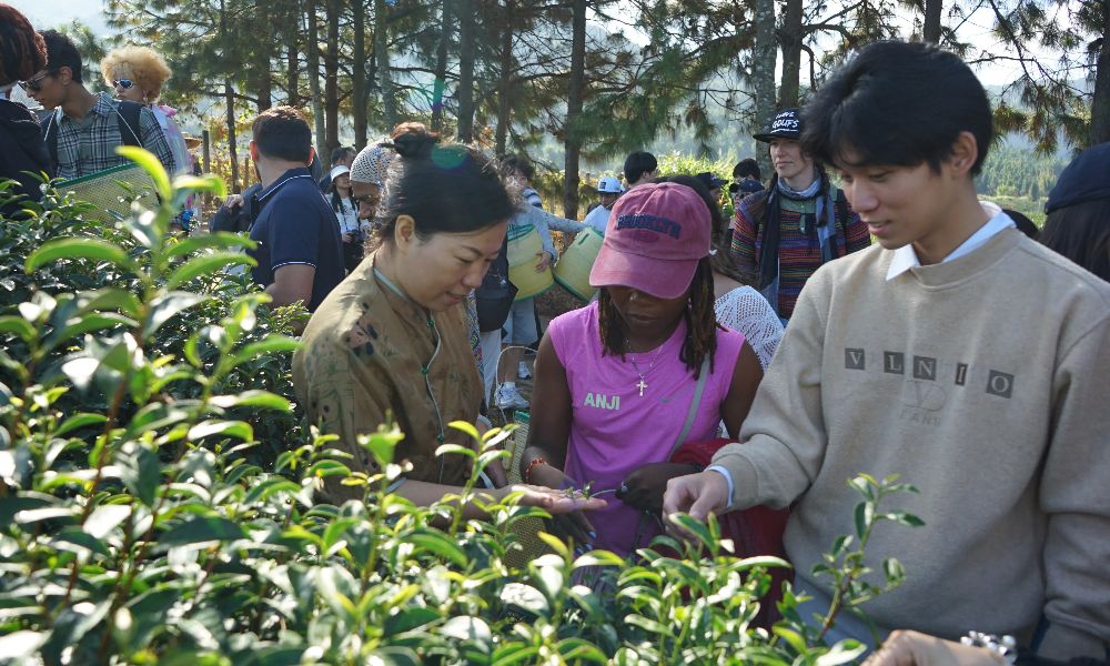 国际留学生体验采茶、品尝中国茶
