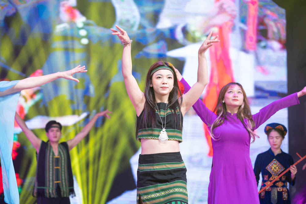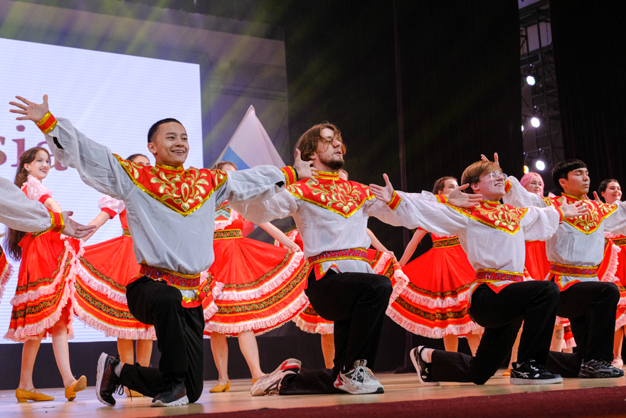 纤纤作细步,精妙世无双。《走遍越南》里,越南女子身着特色传统服饰,用蜻蜓点水般的舞步将水乡温柔娓娓道来,与此同时越南学生们随着竹竿舞的节奏,展现其团结一致的精神。《拼多多爱豆》以其截然不同的k-pop风格点燃全场,多首流行歌曲的演绎让表演引人入胜,展现出他们的热情与活力。舒缓音乐缓缓流淌,轻快步伐舞动全场,《斯拉夫融合舞蹈》展现俄罗斯人民对祖国的深情和对传统的敬重。临近尾声,我们看到各国学生齐聚一堂,他们通过《四海一家》歌唱出自己独特的文化与故事,用旋律跨越语言和国界,展现出世界文化的多样性,我们也从中感受到了团结的力量与共同的精神纽带。