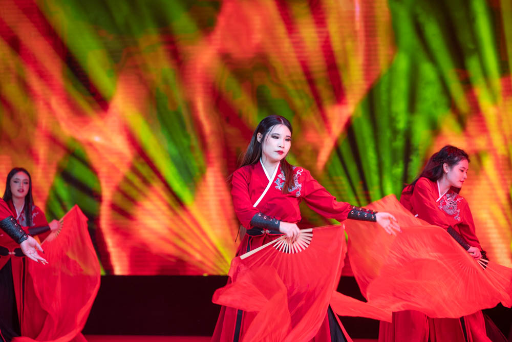 第十六届世界文化节晚会在云山会堂拉开了序幕。蔡红在致辞中提到,十六年匠心铸就,十六年历久弥新,世界文化节已然成为广外重要且美好的一部分,四海一家,情融广外,来自世界各地的广外人在今晚将会用丰富多彩的艺术展演诠释四海一家的温暖和情融广外的力量。