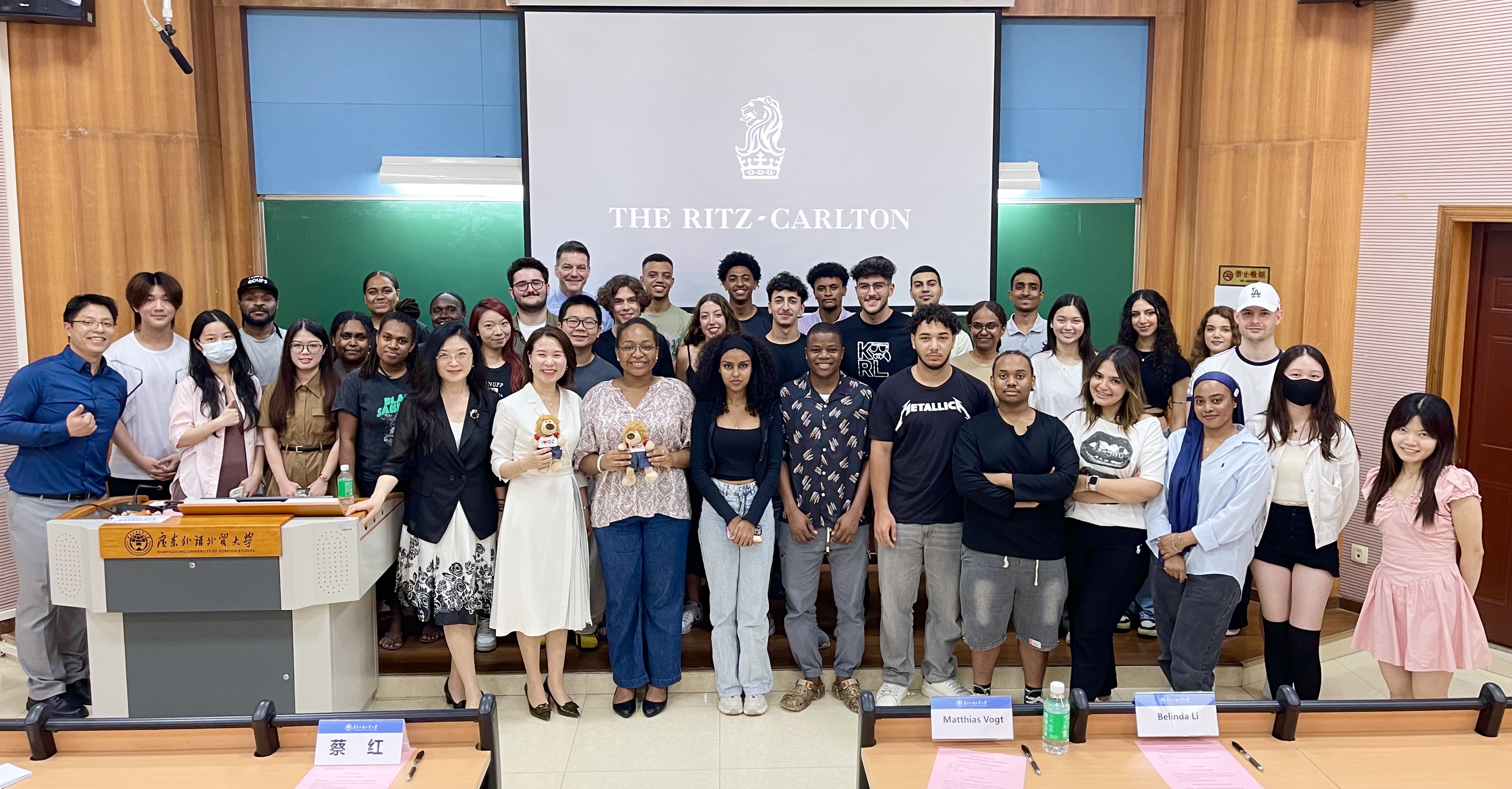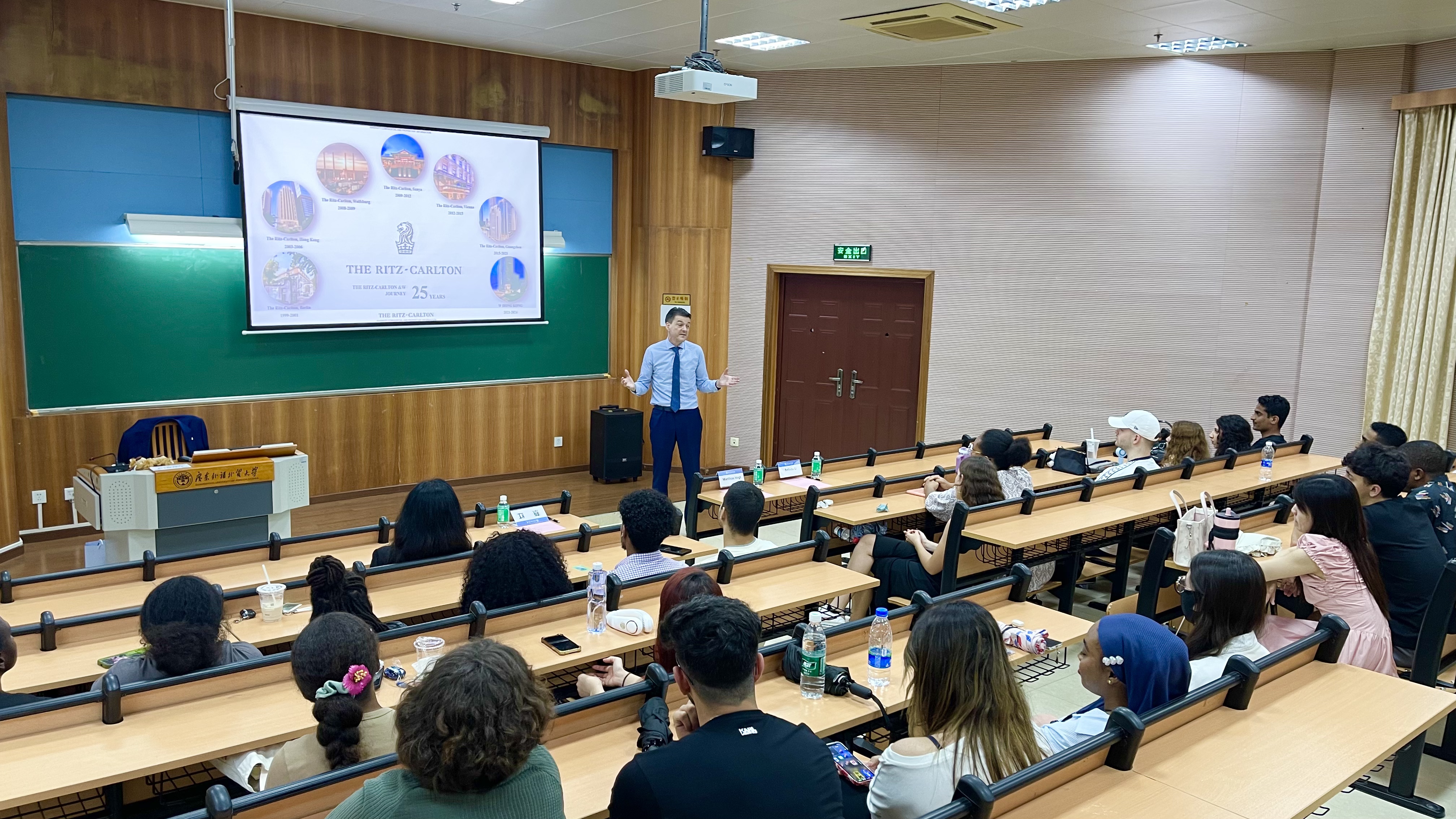 傅国贤介绍了丽思卡尔顿酒店的发展情况以及顶级酒店行业对人才的需求,并高度评价我校留学生在酒店实习期间的表现。展望未来,他期待与广外进一步深化合作,共同培养兼具国际视野、专业服务素养与社会责任感的国际人才。