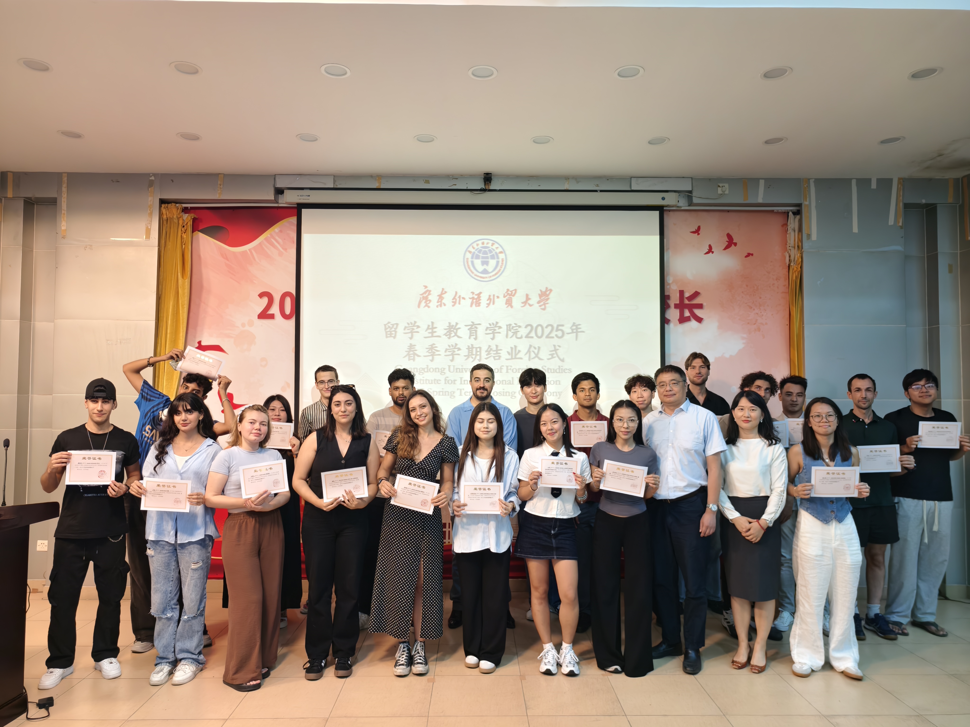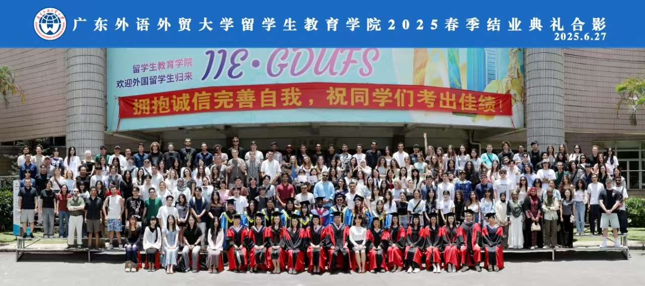 最后,主持人宣布广东外语外贸大学留学生教育学院2025春季学期结业仪式圆满结束。在热烈的掌声与诚挚的祝福中,本次典礼圆满落幕。