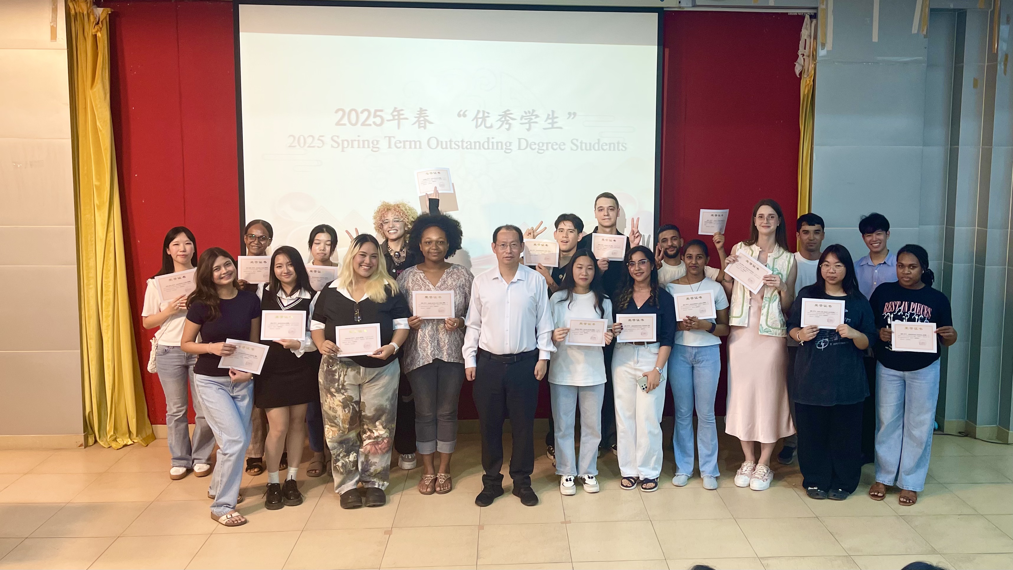 申明浩副校长为2025年春季学期涌现出的"优秀学生"和"社会活动积极分子"颁发荣誉证书。