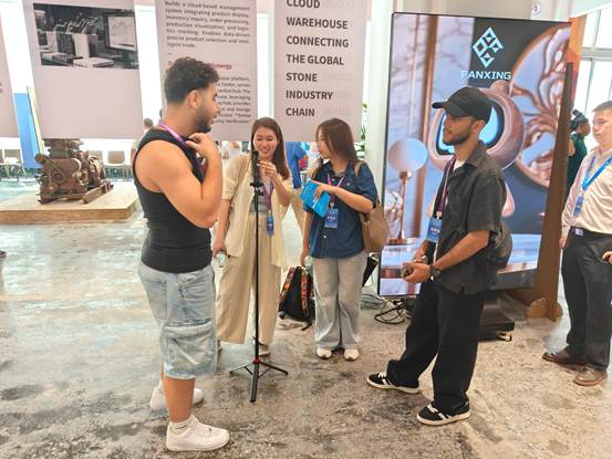 云浮地处广东中西部、两广交汇处,是广东的“大西关”,被誉为中国石都,是中国三大石材基地之一。目前,云浮拥有全球最完整的产业链,覆盖矿山开采、加工研发、机械制造等全领域。外国留学生们经过国道324段的“百里石材走廊”,对两侧的石材展品赞叹不已;在各个展位之间流连,惊叹于艺术展品之惟妙惟肖,在大型切割机器面前,切身感受云浮石材产业创新成果与数字化转型成就。