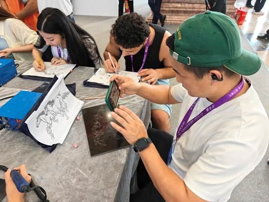 下午,在梁建坤大师的亲自指导下,学生亲自体验制作云浮非遗石艺石刻画。梁健坤作为广东省非物质文化遗产(云浮石艺)代表性传承人,在云浮工艺美术界磨砺三十余年,对石刻工艺有着自己独到的理解。同学们在他的指导下,挑选线稿、临摹、转印、试笔……一系列的手工工序,生动展现了云浮石刻大道至简的独特魅力。最终,大家都获得了心仪的成品。