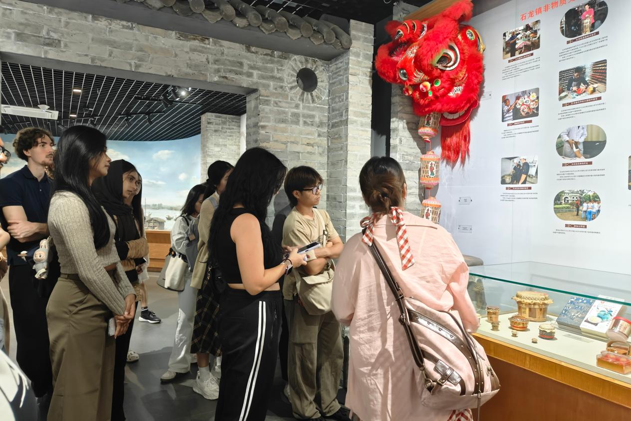 在讲解员的引导下,留学生们还深入了解了石龙镇的非物质文化遗产,包括麒麟舞、木鱼歌、灯笼画等富有岭南特色的民俗项目。传统民俗与现代产业在此交相辉映,勾勒出一幅传统与现代融合的生动图景。