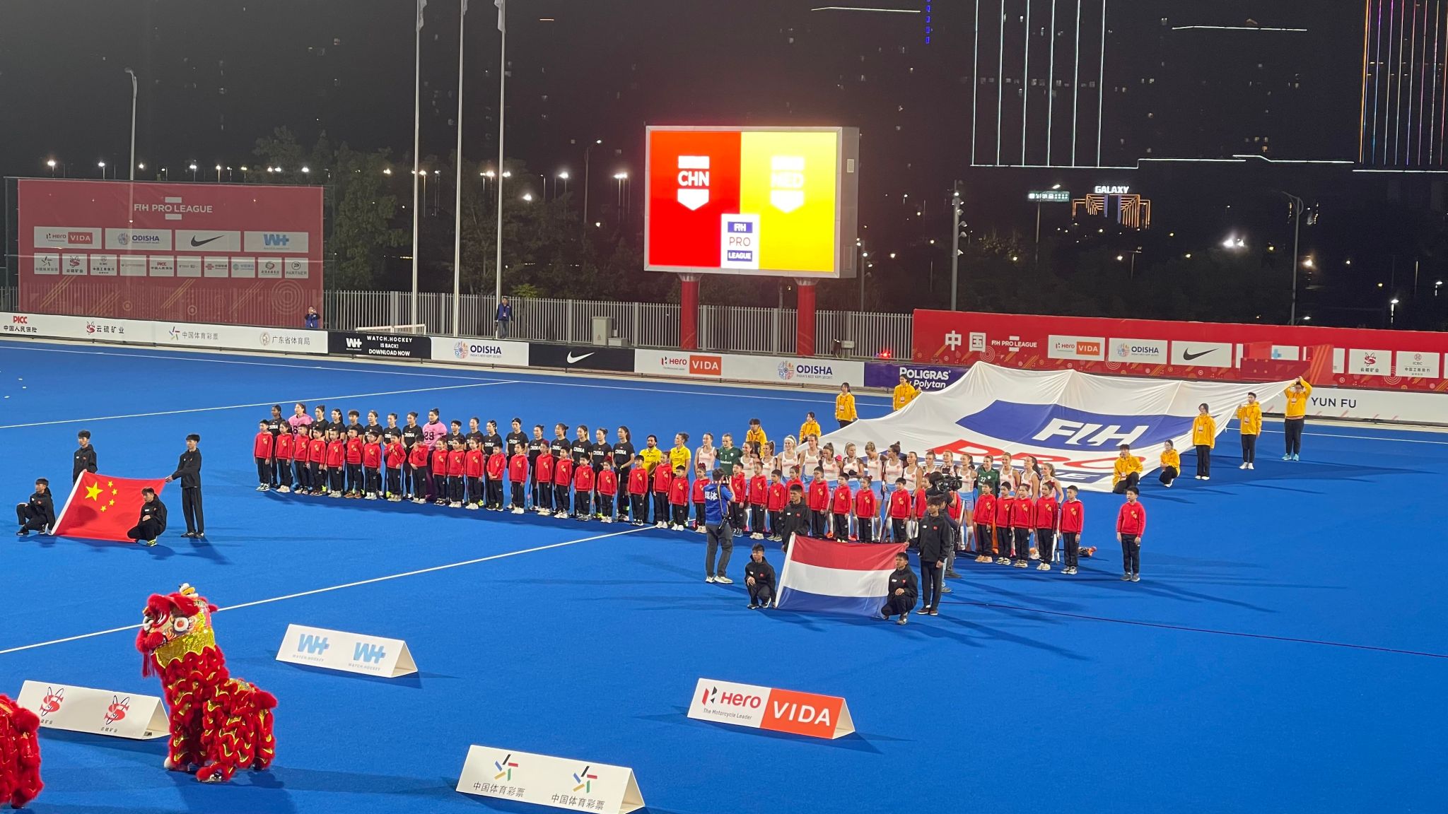 夜幕降临,FIH女子曲棍球世界超级联赛第7赛季(中国站)正式拉开帷幕。开幕式上,绚丽的烟火腾空而起,灵动的醒狮再次登场,瞬间点燃现场氛围。首场焦点对决中,东道主中国队主场迎战世界排名第一的荷兰队,双方球员攻防转换紧凑、对抗激烈,每一次精彩配合与惊险扑救,都牵动着现场观众的心。留学生们也全情投入,一同欢呼喝彩、呐喊助威,见证赛事魅力。