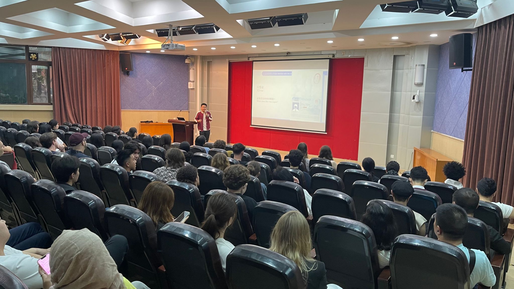 开学典礼结束后,2026年春季新生说明会分多语种(英语、俄语、西班牙语、阿拉伯语、泰语、印尼语、越南语)在多个教室同时进行。本次会议主要对汉语进修生的教学、签证及校园活动等内容进行了说明。会上讲解了汉语进修生的各项教学活动,如分班、考勤等,并强调了签证分类及居留许可办理等各项事务的重要性。