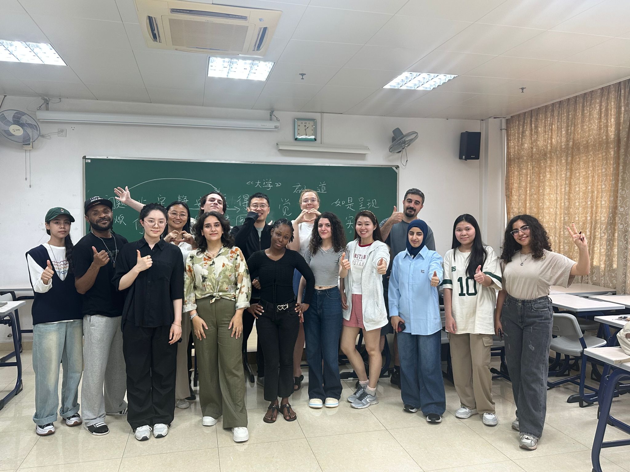 现场氛围轻松而治愈,留学生们积极投入互动,或专注跟随引导,或认真学习太极动作,在沉浸式体验中卸下疲惫、放松身心。有同学分享道:“这次活动让我学到了很多。不仅了解了中国传统的太极文化,更学会了和自己的情绪、压力相处。虽然学习体验的时间很短,感觉整个人都轻松了不少。”