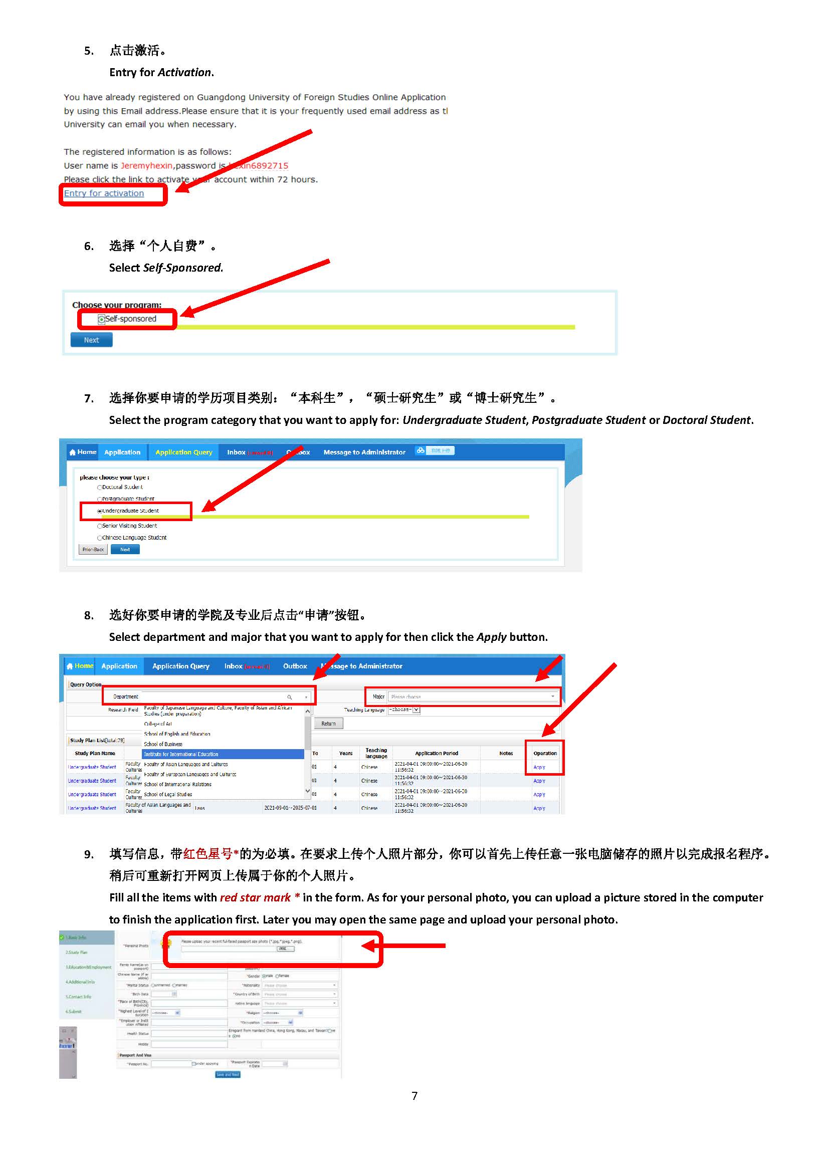 6、大学另有通知需补充的材料。请参考《附录3. 广东外语外贸大学关于其他补充材料的说明》。