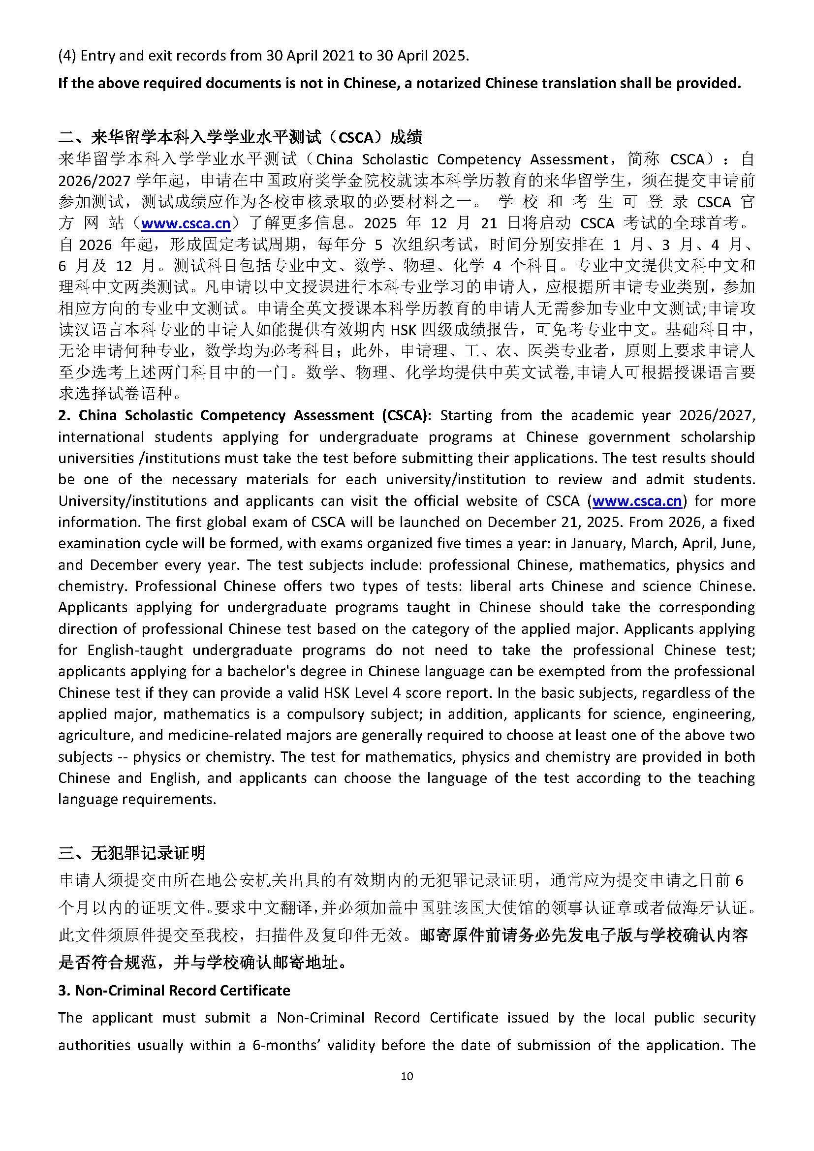 3、来华留学本科入学学业水平测试(CSCA)成绩(须有专业中文及数学成绩)。