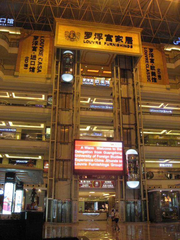 留学生教育学院师生首先参观了广东罗浮宫家居集团。当走进这座目前全球最高、占地面积最大的地标性家居主题建筑群时,全体师生被眼前的宏伟的场景所震撼,发出了阵阵的感叹。家居集团特意为来访的同学们提供了英语讲解员。在讲解员的引领下,同学们逐层参观了罗浮宫家居。来自美国的Karren表示,这是她第一次见到如此宏大的家居中心,并想体验在这里展示的每一样家具。