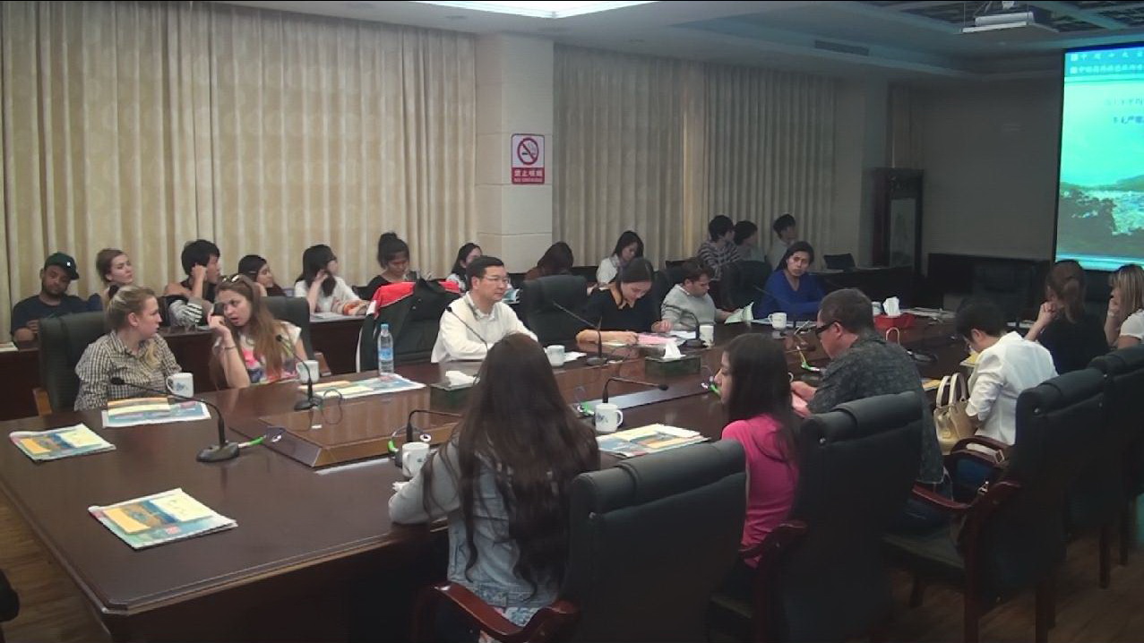 离开南海一号博物馆后,一行人来到了阳江市海陵岛经济开发试验区管委会,听取了关于海陵岛的介绍。海陵区委委员、区委宣传统战部部长叶秀华主持介绍会,区旅游文体局副局长吴锦利为大家讲解了海陵岛的人文风俗、旅游发展、产业开发等情况,让留学生们对海陵岛有更全面的了解。在听完吴局长的介绍后,梁学宏院长讲话,感谢海陵岛区委领导的热情接待和详尽介绍,指出中国国情教育系列活动旨在带领外国留学生参观中国政府、企业、社区、农村贫困地区等,让留学生们能亲身了解中国真正的发展情况,使到留学生们能更深入、全面、客观地了解真实的中国。介绍会由我校英语语言文化学院学生袁捷担任英语翻译。