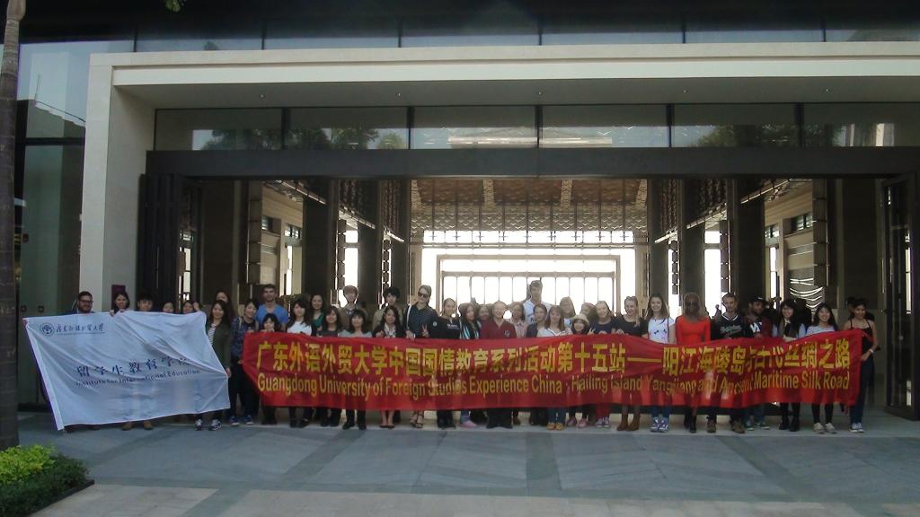 2014年11月15-16日,42位来自十六个国家的外国留学生在留学生教育学院院长梁学宏的带领下前往阳江,参加学院组织的第十五次中国国情教育系列活动——“阳江海陵岛与古代丝绸之路”。参与此次活动的留学生主要是我校国家留学基金委奖学金生、中国政府孔子学院奖学金生以及外国合作院校交换生。